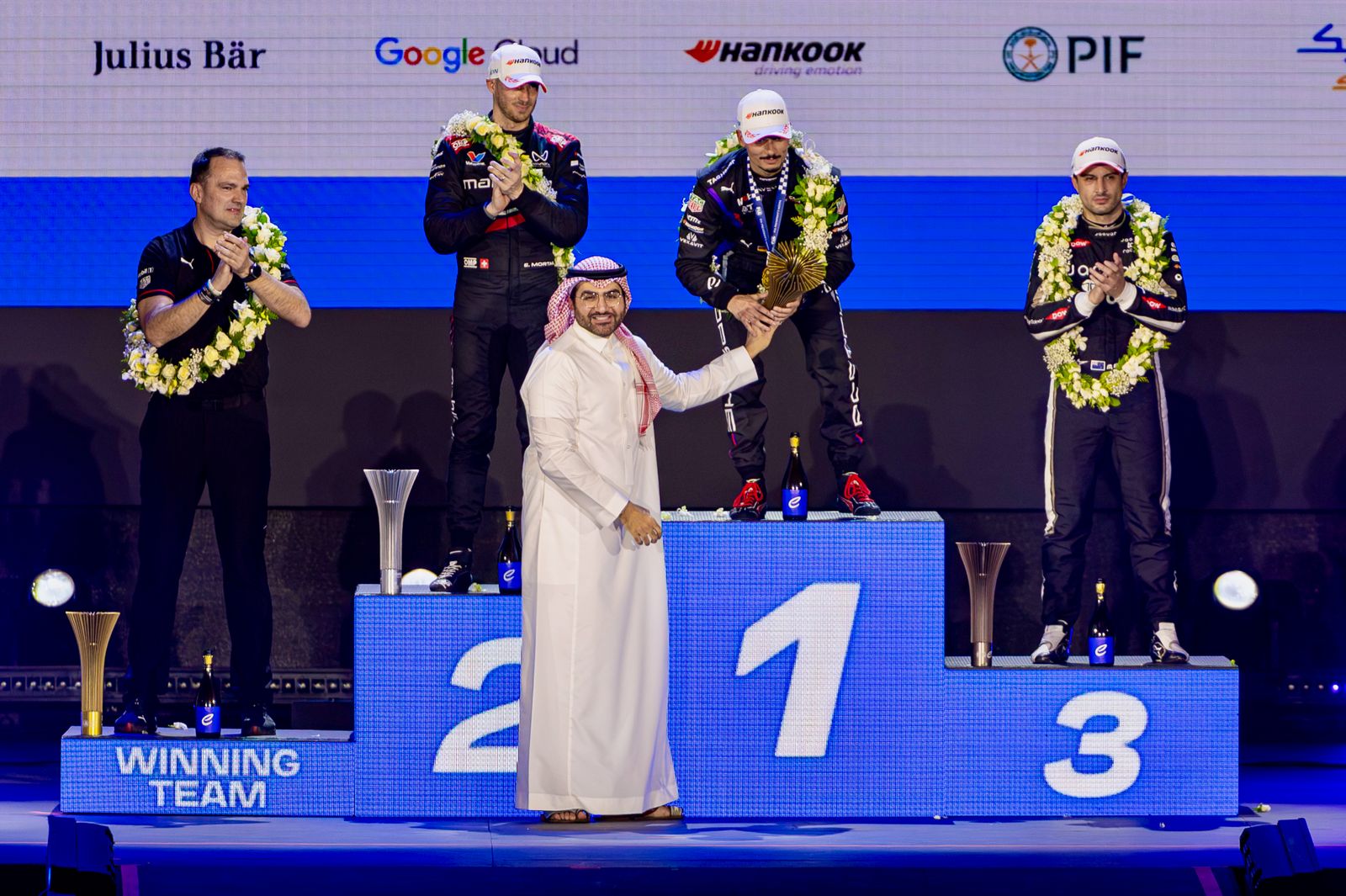 وتوّج معالي نائب وزير الرياضة الأستاذ بدر بن عبدالرحمن القاضي، السائق الألماني باسكال فيرلاين (فريق بورشه) بالمركز الأول، بعد أداء استثنائي مكنه من حصد لقب هذه الجولة.