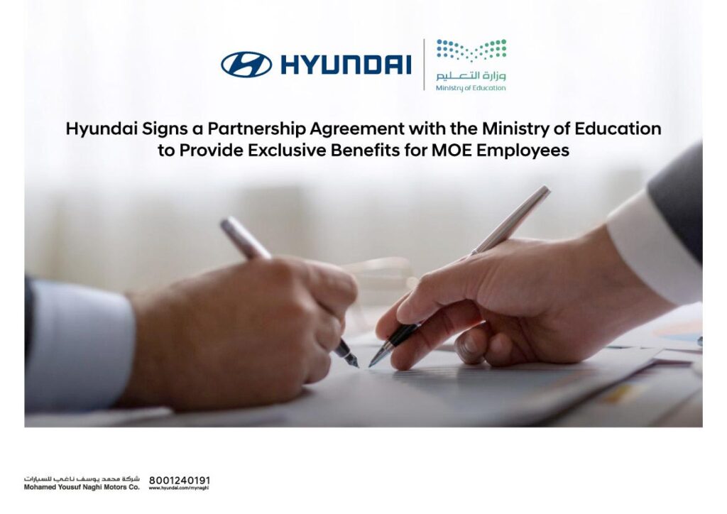 أعلنت شركة محمد يوسف ناغي للسيارات – هيونداي عن توقيعها اتفاقية تعاون مع وزارة التعليم من خلال تقديم مجموعة من العروض الحصرية والمميزة لمنسوبي وزارة التعليم في المملكة العربية السعودية، وذلك في إطار دعم الشراكات الاستراتيجية مع القطاع التعليمي.