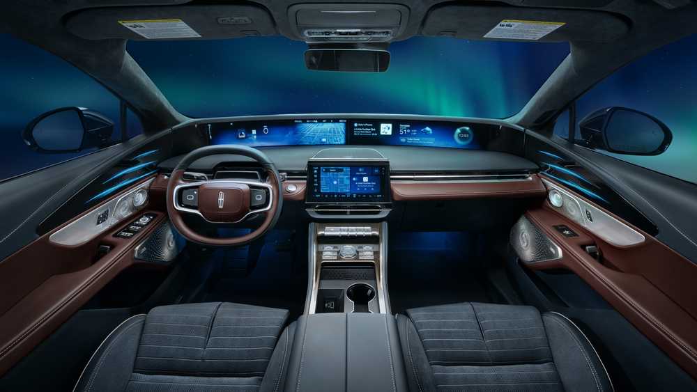 عند دمج هذا التصميم مع ميزة Rejuvenation من لينكولن، تتحول الشاشات العملاقة داخل المقصورة إلى مشاهد تأملية مريحة… أحدها يحاكي تمامًا الشفق القطبي المتوهج.